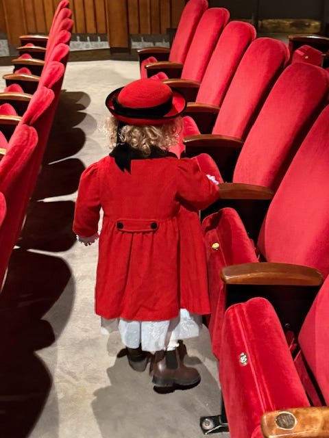 Many people thought I was being completely unrealistic to take a child so young to the theatre, but based on years of preparing children and expecting the best from them, I believed it was more than possible. The whole experience seemed magical for my granddaughter, including dressing up, because it was such a special occasion. Fortunately, I saved my daughter’s 30-year-old coat and hat, which added to the experience.